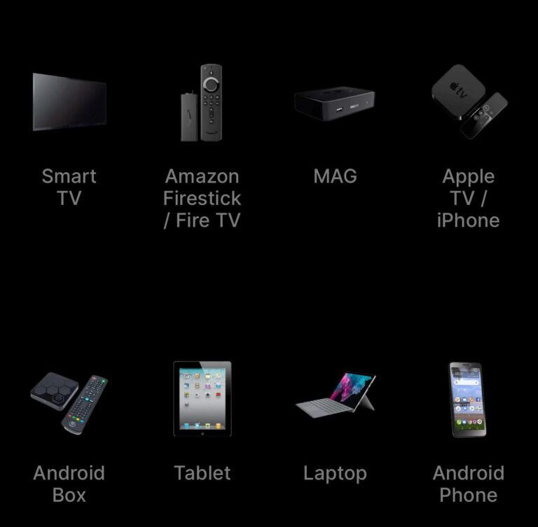 Nous prenons en charge tous les appareils, notamment les téléviseurs connectés, Kodi, VLC, les ordinateurs, Vu+, DreamBox, Enigma, les boîtiers Android, les smartphones Android, MAG, Amazon Firestick et bien d’autres.